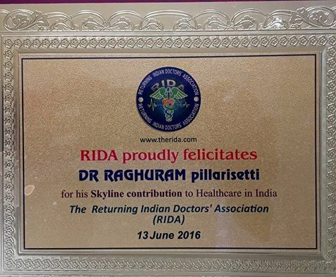 Dr.P.Raghu Ram was felicitated by Mr. Kadiyam Srihari, Hon'ble Deputy Chief Minister, Govt of Telangana @ an event organised by RIDA - Returning Indian Doctors Association, the only Organisation in the Country that represents the interests of Doctors who have trained abroad & currently working in India. Speaking on the occasion, Dr. Raghu Ram dedicated the award to his mother, for whom he returned to India with a mission to make meaningful difference to the delivery of breast healthcare in India.