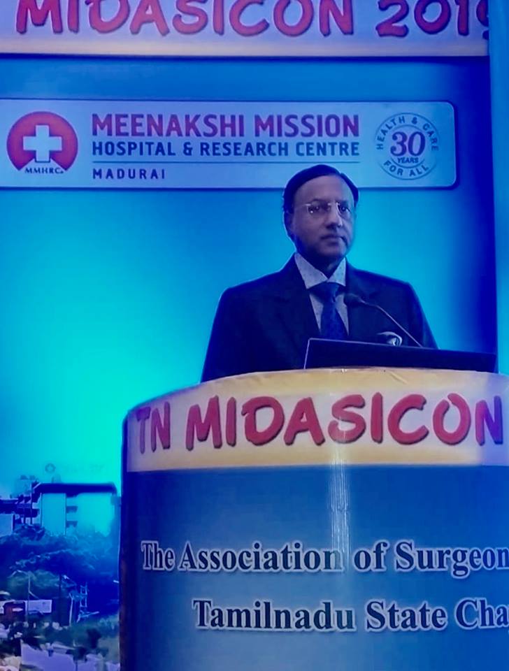 Dr.P. Raghu Ram, President elect, The Association of Surgeons of India (ASI) was the Chief Guest on 21 April 2019 at the Mid term Conference of Tamil Nadu Chapter of Association of Surgeons of India held in Dindigul, near Madurai - a small town in Tamil Nadu. He inaugurated the meeting and commended the the Surgeons in Dindugal for organising a very purposeful meeting where close to 300 Surgeons in the region actively participated.