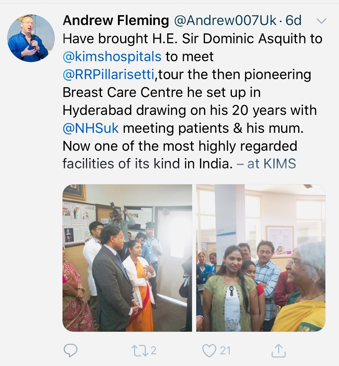 Sir Dominic listened keenly about the innovative PINK RIBBON CAMPAIGN championed by Ushalakshmi Breast Cancer Foundation (a not for profit breast cancer charity) in partnership with